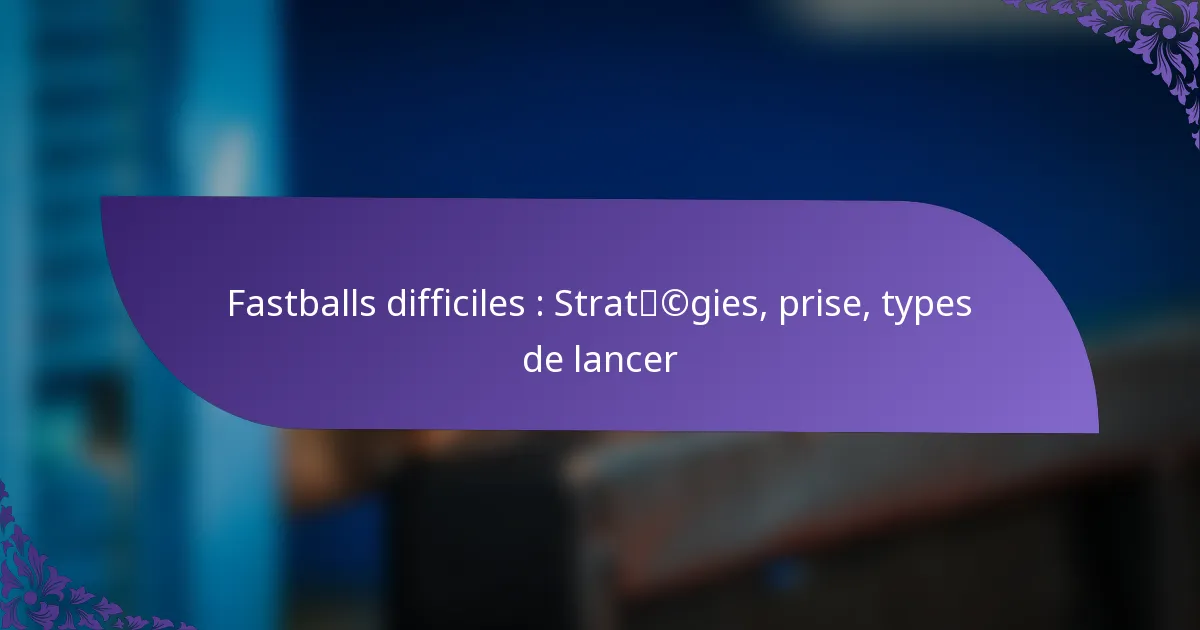 Les fastballs sont le lancer le plus fondamental au baseball, caractérisés par leur vitesse et leur trajectoire directe. Les types principaux incluent les fastballs à quatre coutures, à deux coutures et le cutter, chacun ayant des prises et des effets distincts sur le frappeur.